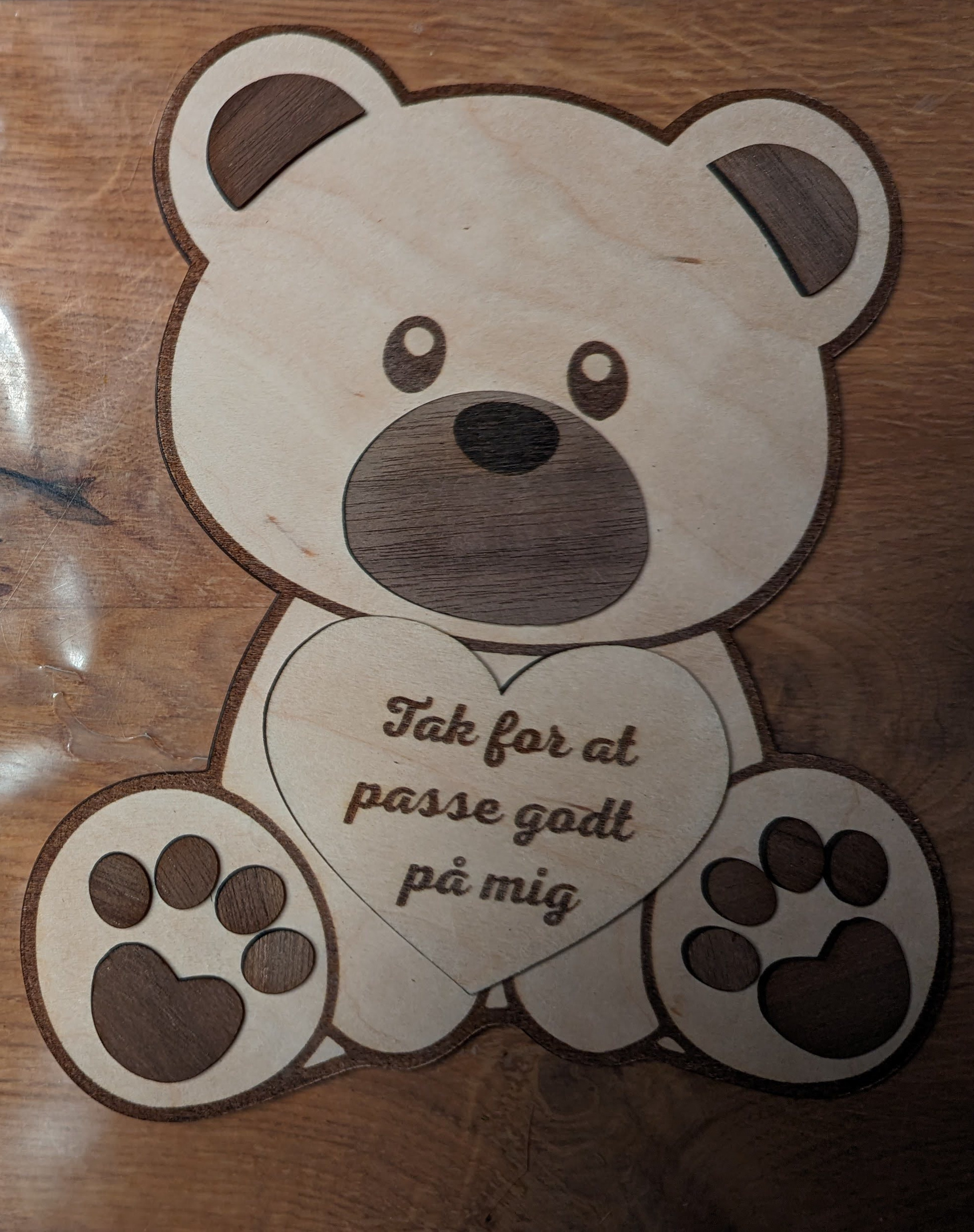 Giv en gave lige fra hjertet. Denne søde bamse er lavet af birkefiner og smukke detaljer i valnødsfineret birkefiner. Bamsen Holdet er hjerte, hvor det er muligt at indsætte en valgfri tekst. – Perfekt til en kærlig besked, et navn eller en mindeværdig dato.